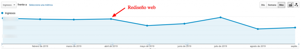 Pocos meses antes al comienzo del proyecto CRO, el cliente realizó un rediseño de la web, tras el cual como en muchos de los casos de rediseño que hemos podido seguir de cerca, se produjo un descenso de la tasa de conversión y en los primeros meses se produjo una reducción en los ingresos importante. En abril se realizó el cambio web, tras la caída de los principales indicadores, el objetivo era estabilizar la web y dar solución a los principales asuntos que iban surgiendo.
